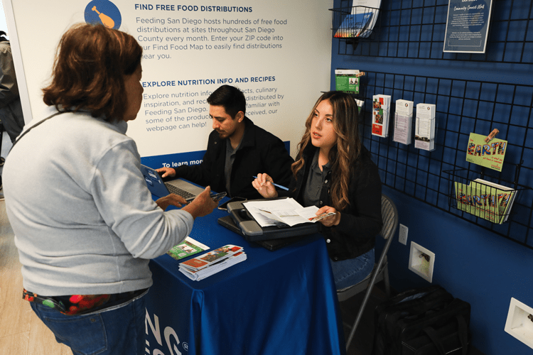 Feeding San Diego’s CalFresh team helps a woman understand her options for benefits.